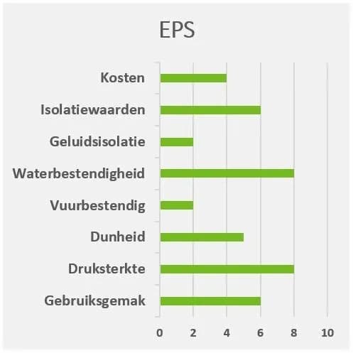 EPS is geëxpandeerd polystyreen. Het wordt ook vaak piepschuim of tempex genoemd. De EPS isolatieplaten ontstaan door polystyreenkorrels die in een mal worden gegoten, verhit en aan elkaar gaan kleven. Hierdoor vormen zich ook veel luchtbelletjes. Deze worden ook wel EPS parels genoemd. 98% van de platen bestaan hierdoor uit lucht, wat het een lichtgewicht maakt. Het zorgt daarbij voor uitstekende isolerende eigenschappen.