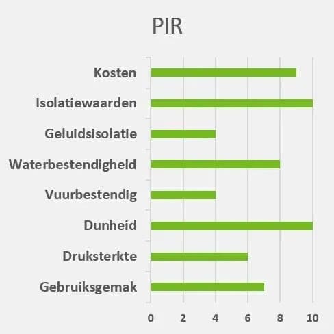 PIR is een hardschuim, welke qua structuur lijkt op PUR. PIR isolatieplaten komen in veel verschillende varianten. Zo zijn er voornamelijk platen die aan twee zijden voorzien zijn van een dampdichte laag. PIR isolatieplaten kunnen worden gecombineerd met constructieplaten zoals bijvoorbeeld OSB, Underlyment, Gisplaten of Fermacell gipsvezelplaten wat de verwerking en installatie aanzienlijk kan versnellen. Hoewel deze isolatieplaten niet brandveilig zijn, presteren ze beter tegen extreme hitte dan EPS of XPS.